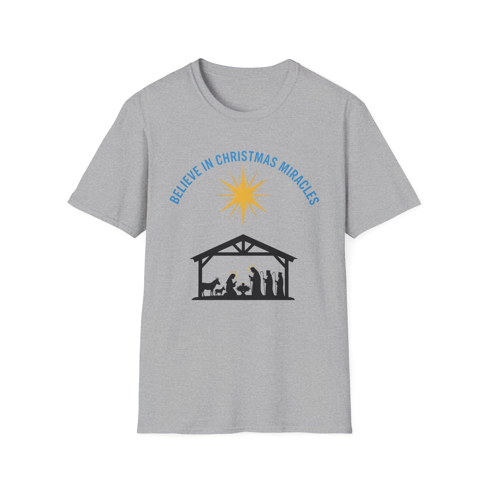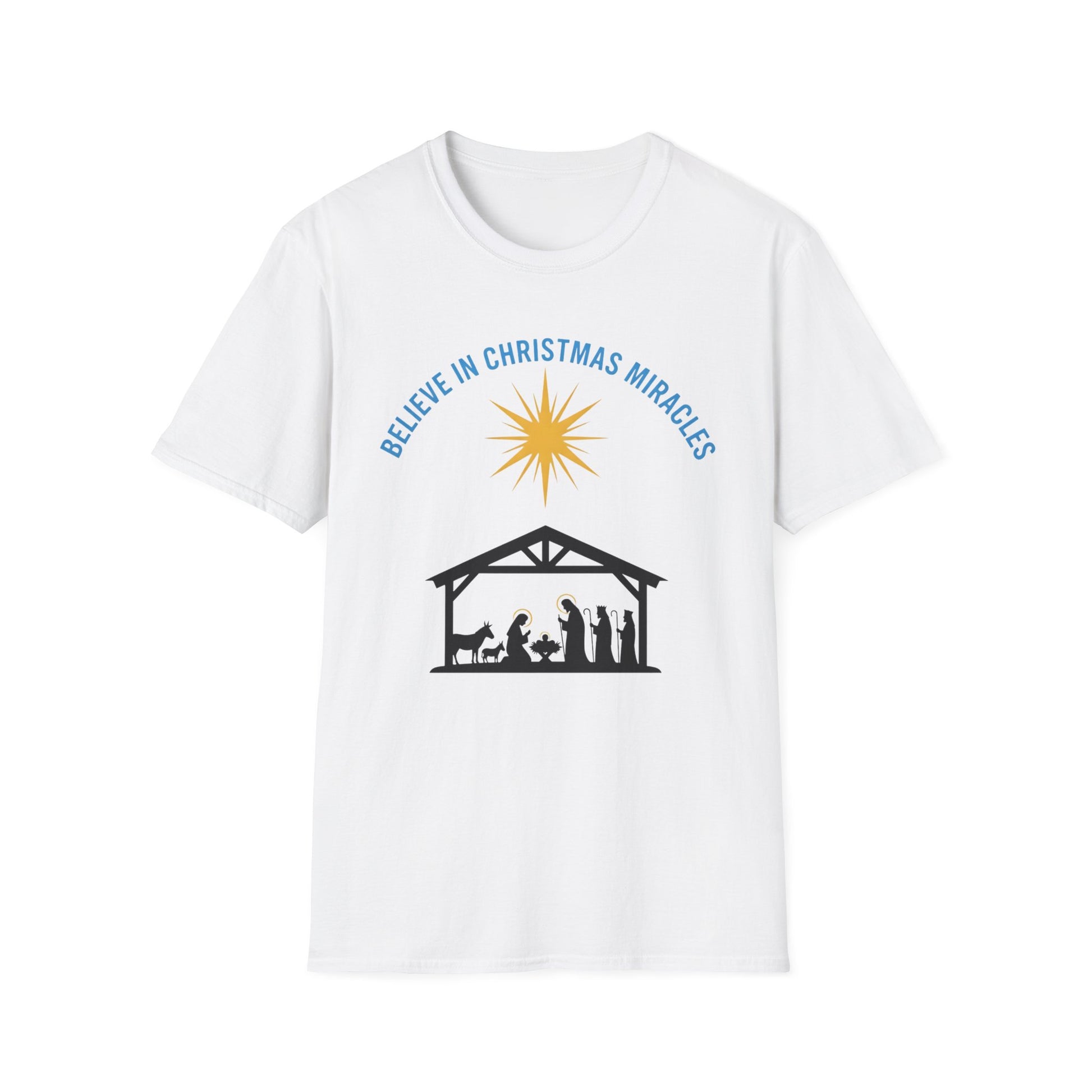 A066 - This Unisex Softstyle T-Shirt offers a perfect blend of comfort and style, making it an essential addition to any wardrobe. Crafted with sustainable materials, it carries a thoughtful message of encouragement that resonates during the holiday season—believing in Christmas miracles. The lightweight fabric feels soft against the skin, perfect for cozy gatherings or holiday celebrations. Whether you're dressing up for family festivities or enjoying casual outings, this versatile shirt fits seamlessly into your lifestyle. It's a wonderful gift for anyone who values comfort and meaning during Christmas, making it an ideal present for friends and family alike.