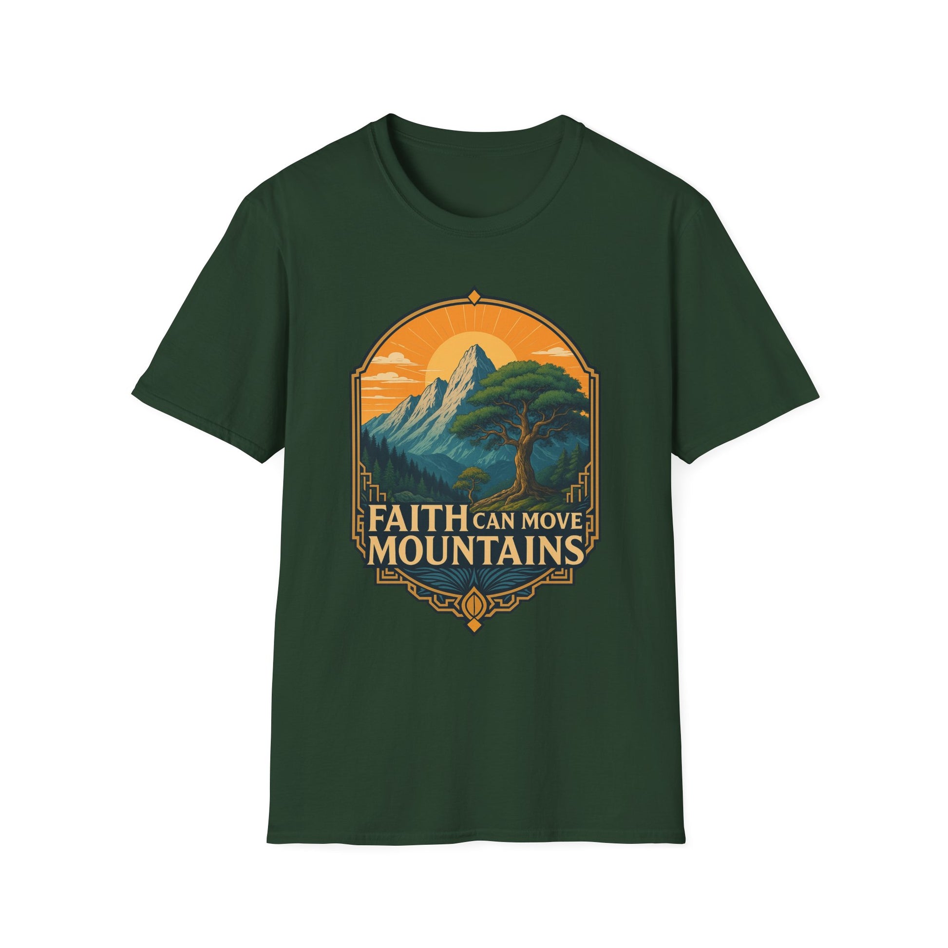 A035 - Embrace inspiration with this stylish unisex softstyle Christian t-shirt that features the empowering message 'Faith Can Move Mountains.' Perfect for casual outings or thoughtful gatherings, this shirt brings a positive vibe to your life. The lightweight fabric and classic fit ensure comfort while making a statement, making it an ideal choice for individuals who appreciate meaningful designs. Perfect for birthdays, religious celebrations, or any occasion where uplifting words can spark joy and motivation. Whether you're gifting it to a friend or adding it to your own collection, this t-shirt is a versatile wardrobe staple that resonates with anyone who believes in the power of faith.