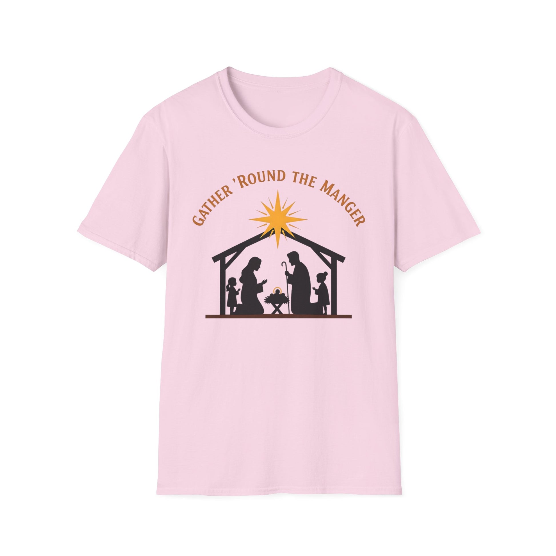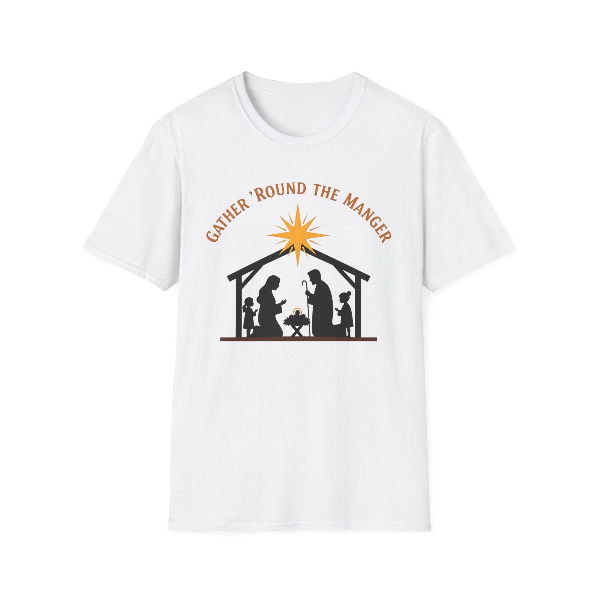 Gather 'Round the Manger Unisex Softstyle Christian Christmas T-Shirt