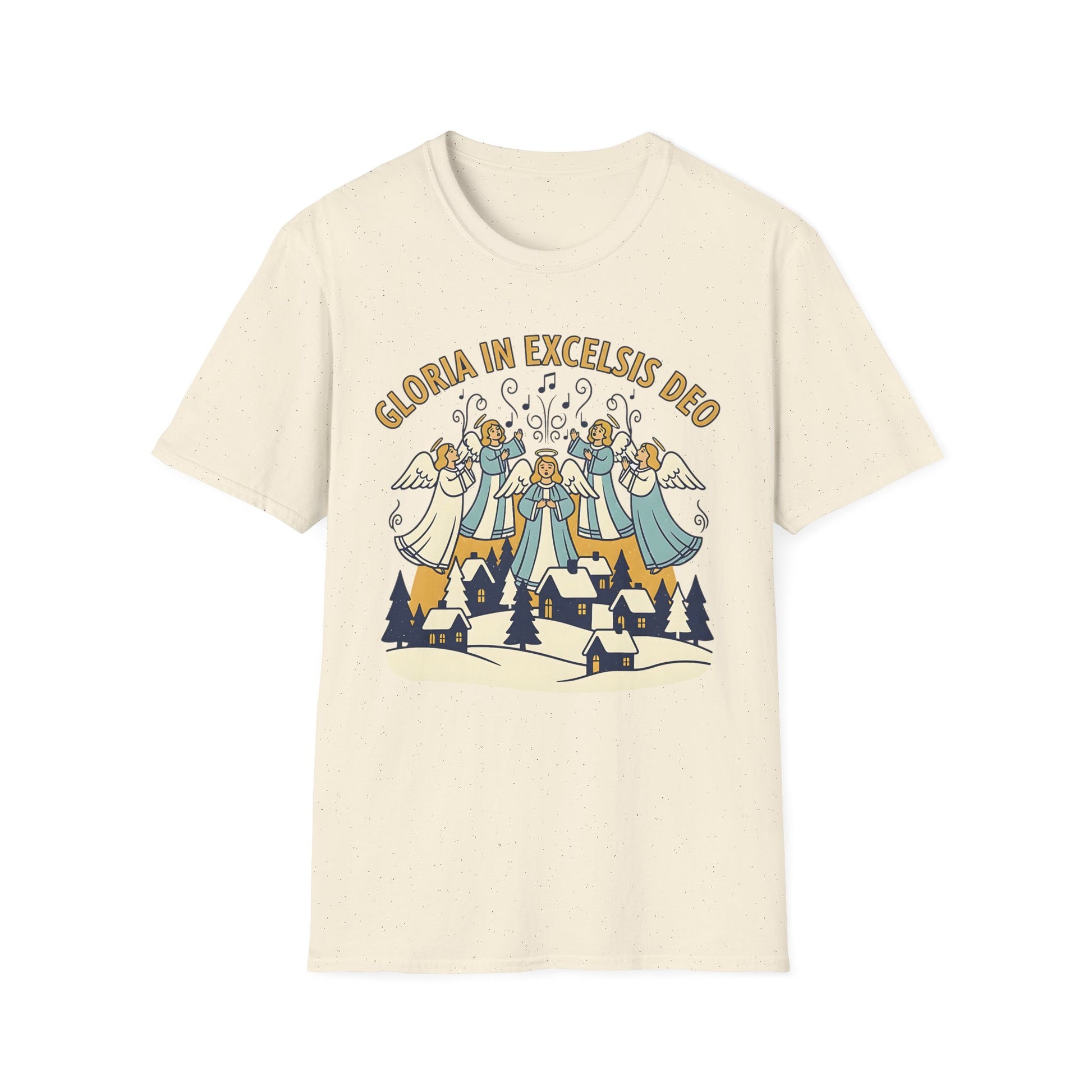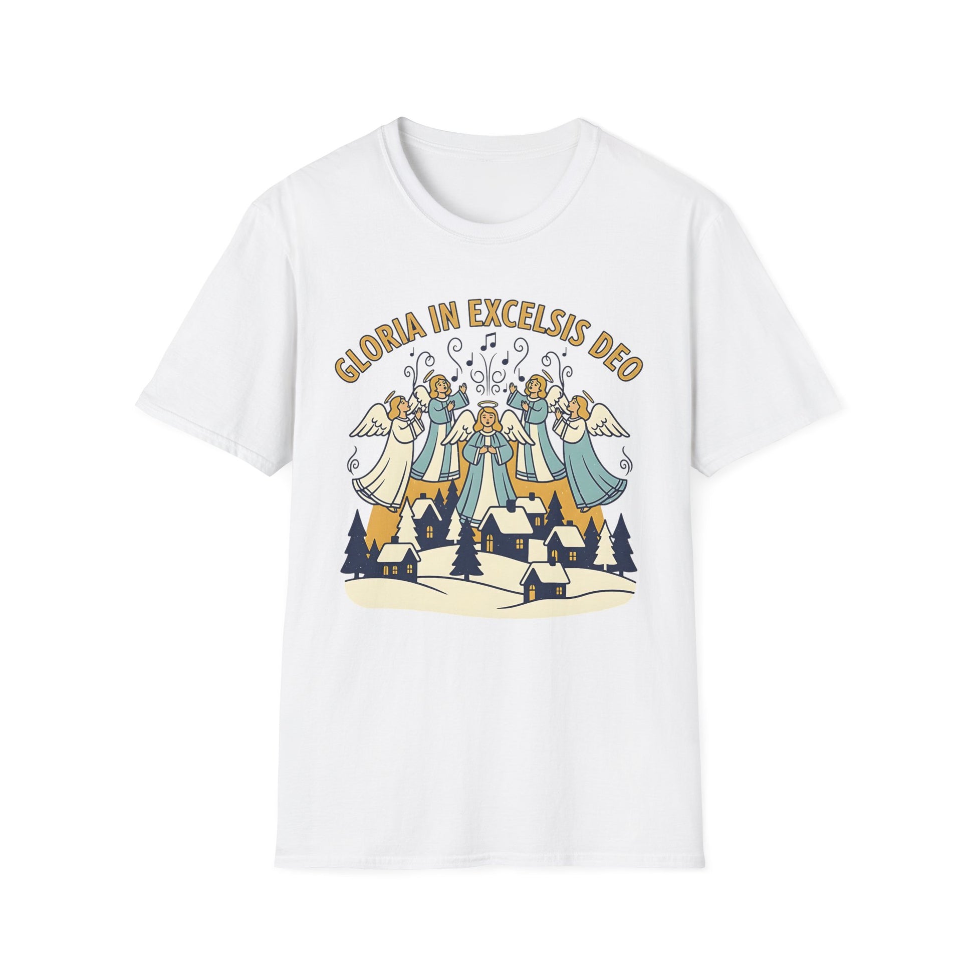 A078 - Embrace the Christmas spirit with this Unisex Softstyle T-Shirt, perfect for worship, family gatherings, and seasonal celebrations. Featuring a charming design that radiates warmth and joy, this t-shirt is ideal for those who appreciate unique and meaningful apparel. Its lightweight, breathable fabric ensures comfort all day long, making it suitable for everything from holiday parties to cozy family meals. A versatile piece, it pairs well with jeans or skirts, effortlessly complementing any casual outfit. Whether you're gifting it to a loved one or treating yourself, this t-shirt is a delightful addition to your holiday wardrobe.