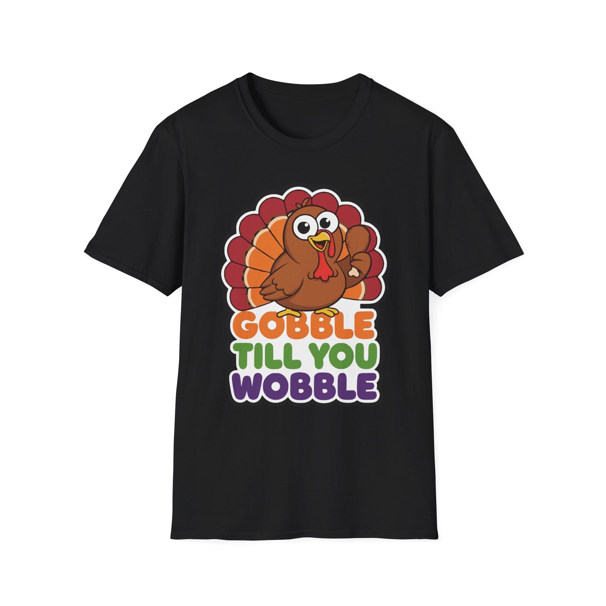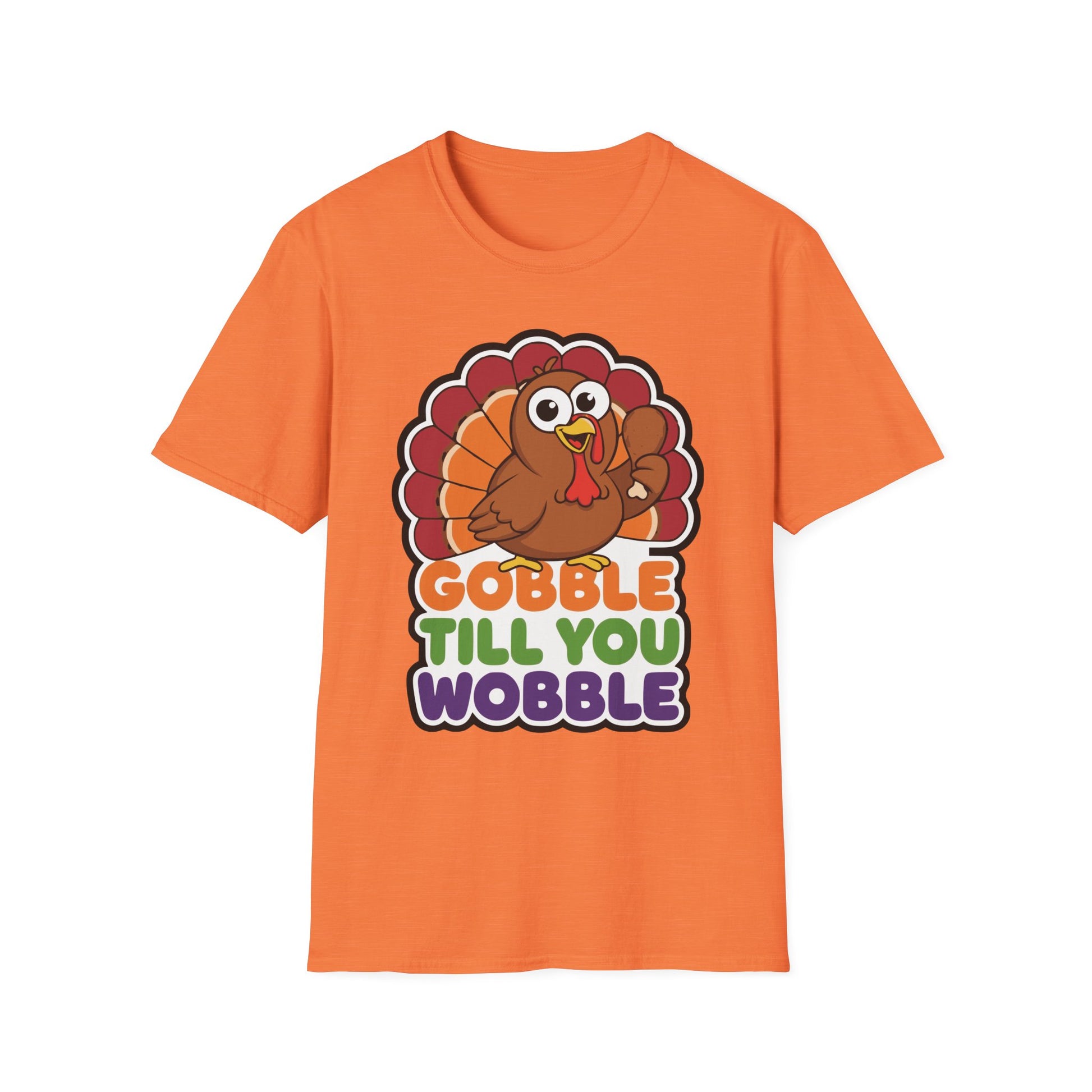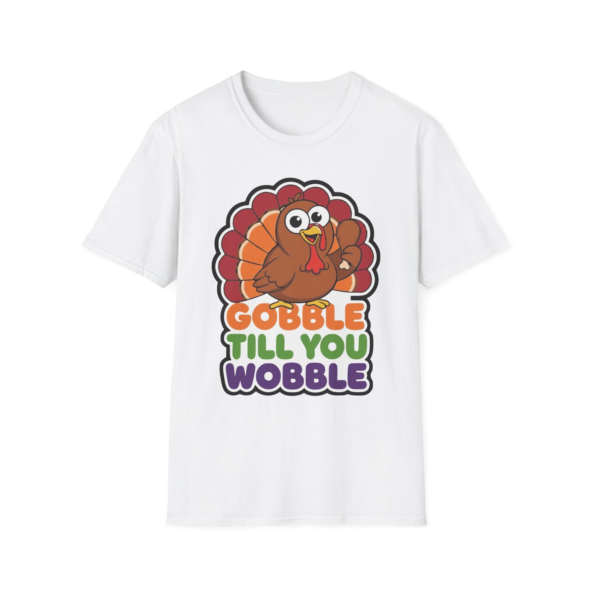 A048 - Embrace the spirit of fun and festivity with our Unisex Softstyle T-Shirt, perfect for Thanksgiving gatherings! This delightful tee features a whimsical turkey design paired with the playful phrase "Gobble till You Wobble". Its cheerful vibe makes it an ideal choice for family dinners, holiday parties, or cozy get-togethers with friends. Crafted for comfort and style, it fits seamlessly into your casual wardrobe, encouraging laughter and joy around the table. Designed for adults, this shirt is a fantastic gift for hosts, family members, or anyone who loves celebrating Thanksgiving. Suitable for casual outings, home gatherings, or even as a light-hearted holiday gift!