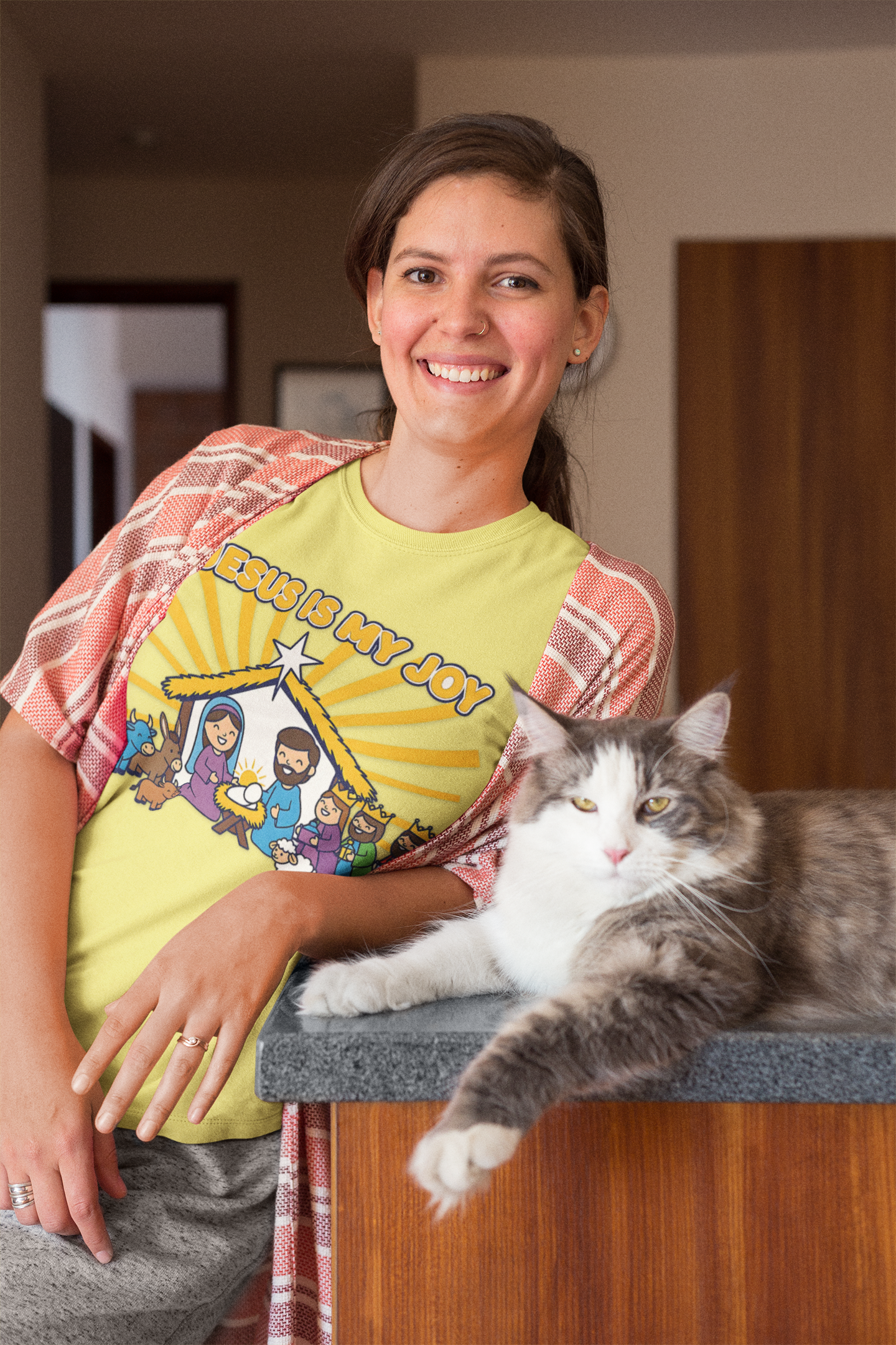 A083 - Introducing a delightful unisex softstyle t-shirt that radiates joy and warmth. This lightweight tee is perfect for daily wear, offering ultimate comfort and style. Featuring a charming design that embodies the spirit of Christmas, it encourages positive vibes wherever you go. Ideal for family gatherings, church events, or festive holidays, this shirt is perfect for anyone looking to express their faith and joy. Whether for Christmas celebrations or casual get-togethers, it's the perfect gift for friends and loved ones who appreciate cheerful and meaningful apparel.