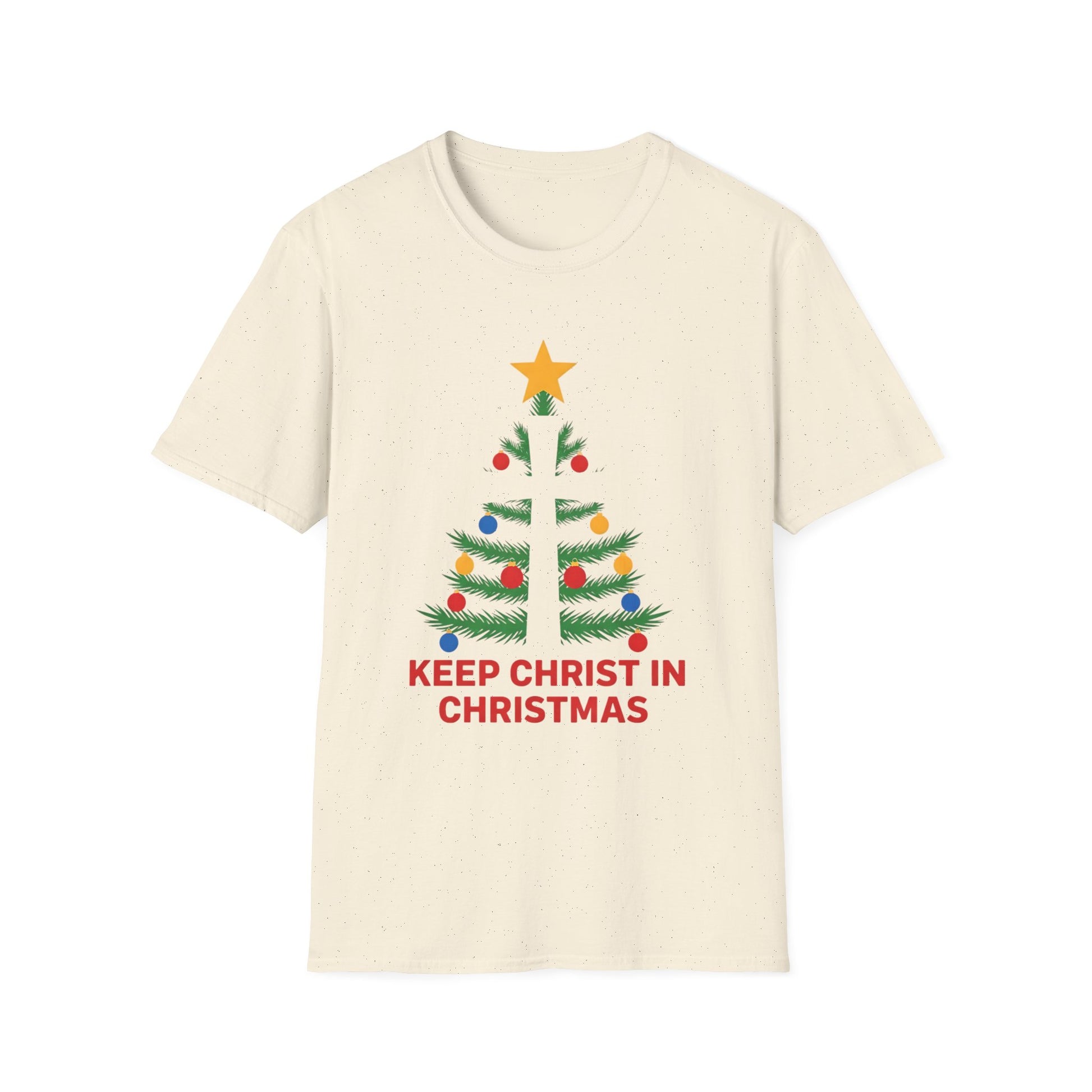 A068 - Celebrate the spirit of the season with this cozy Unisex Softstyle T-Shirt, perfect for spreading the joy and meaning of Christmas. The vibrant design features a subtle cross within a charming tree adorned with festive decorations, making it an ideal piece for holiday gatherings, parties, or relaxed family get-togethers. Crafted with comfort in mind, this t-shirt is versatile enough to be worn during both casual outings and cozy indoor festivities. A thoughtful gift for friends, family, or anyone who cherishes the true meaning of Christmas, this shirt is sure to become a seasonal favorite. Perfect for Christmas celebrations, winter gatherings, or simply bringing a festive touch to everyday wear.