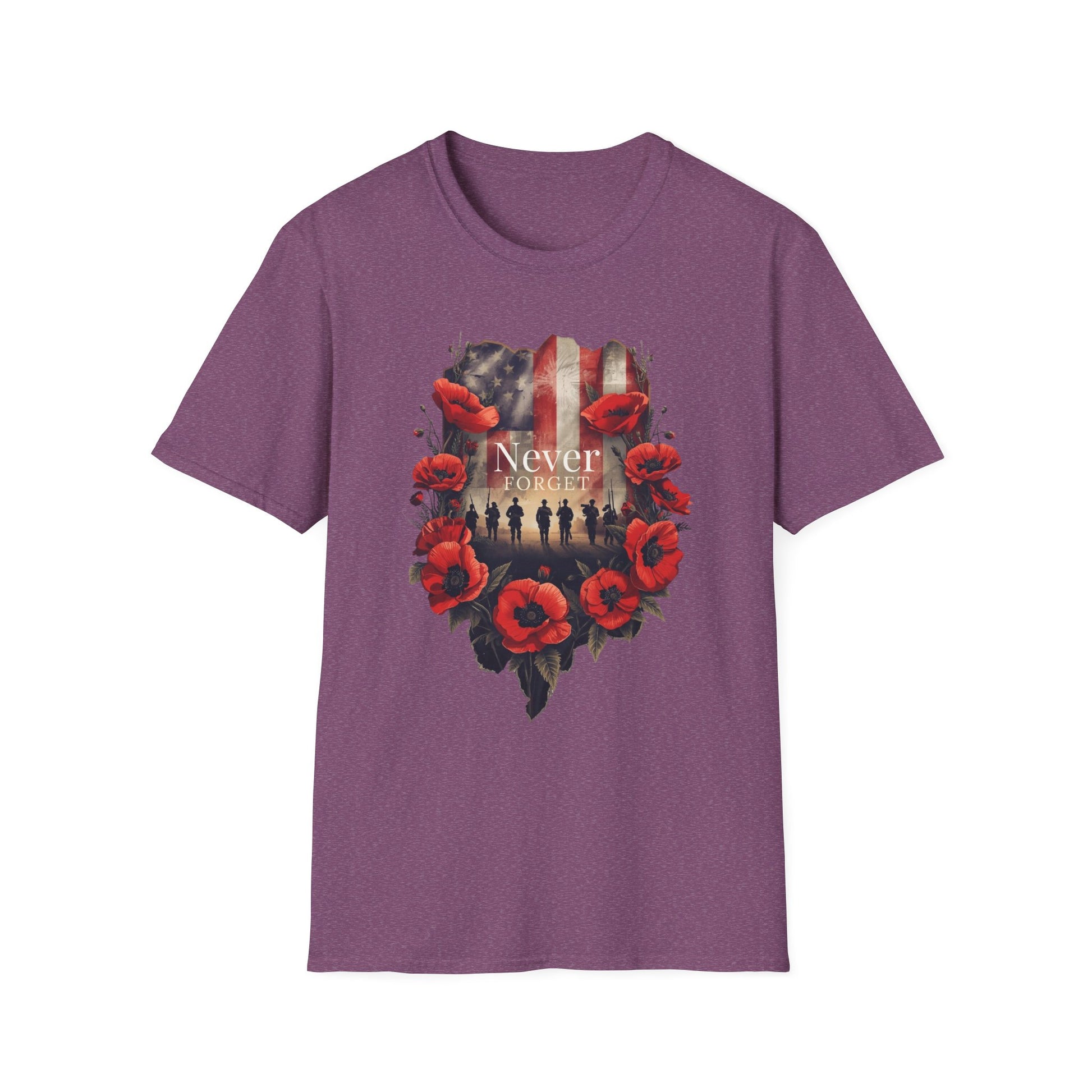 A045 - Introducing a comfortable and stylish Unisex Softstyle T-Shirt that urges us to never forget the sacrifices made by our veterans. This t-shirt offers a relaxed fit that feels blissful against the skin, making it an ideal choice for everyday wear or special occasions. Its unique design, featuring striking colors and themes, speaks volumes and adds a special touch to your wardrobe. This versatile shirt seamlessly transitions from casual outings to festive gatherings, allowing you to showcase your personality no matter the occasion. Ideal for anyone seeking comfort, durability, and memorable style, this t-shirt makes a thoughtful gift for friends, family, or even yourself. Perfect for holidays such as Memorial Day, Veterans Day, or any celebration that honors service and sacrifice.
