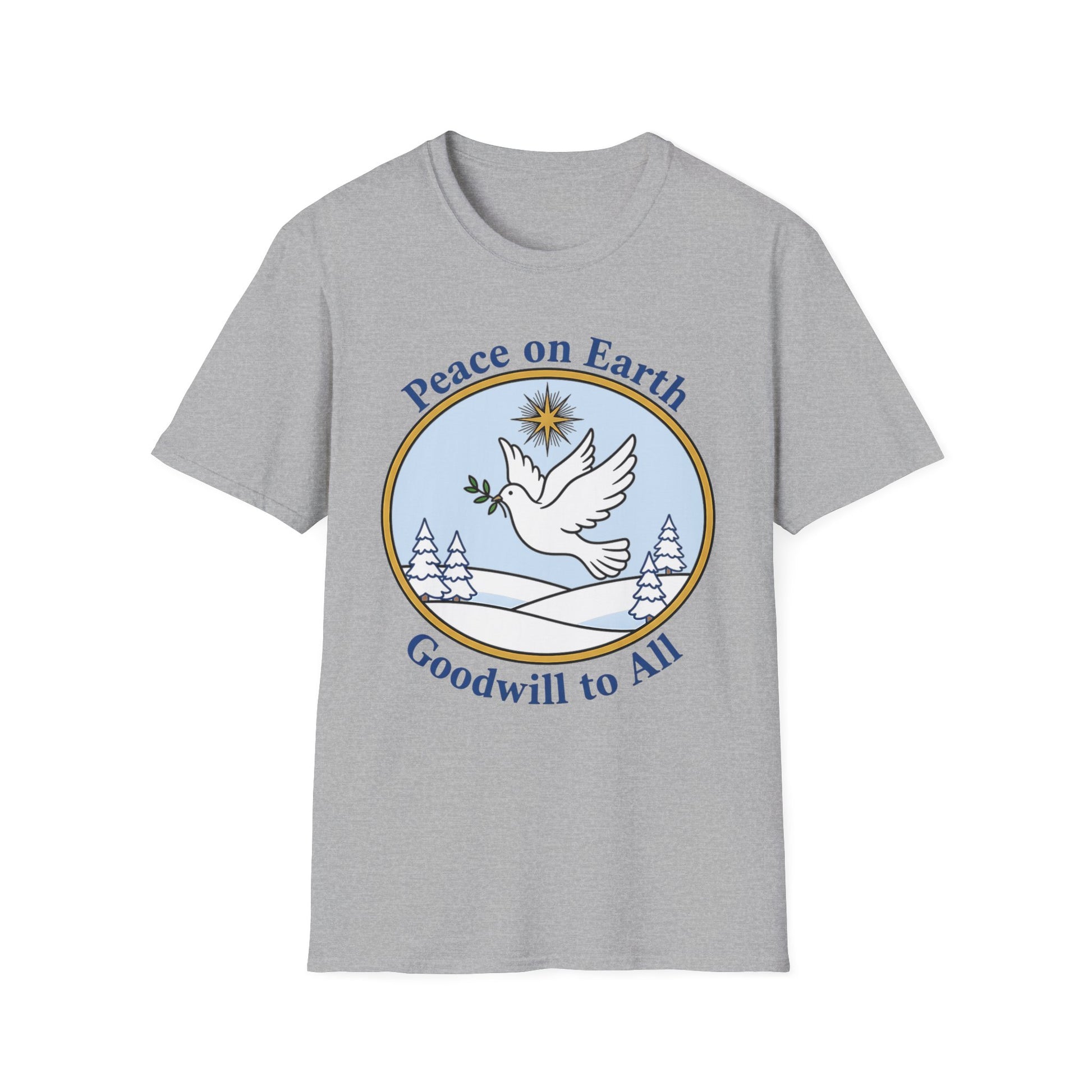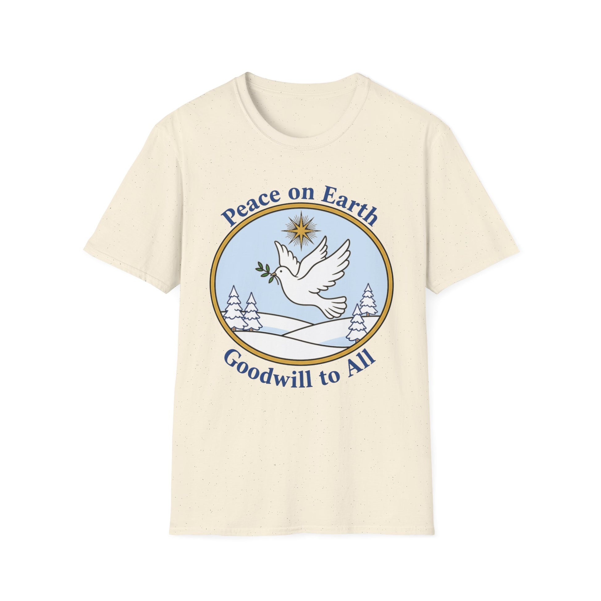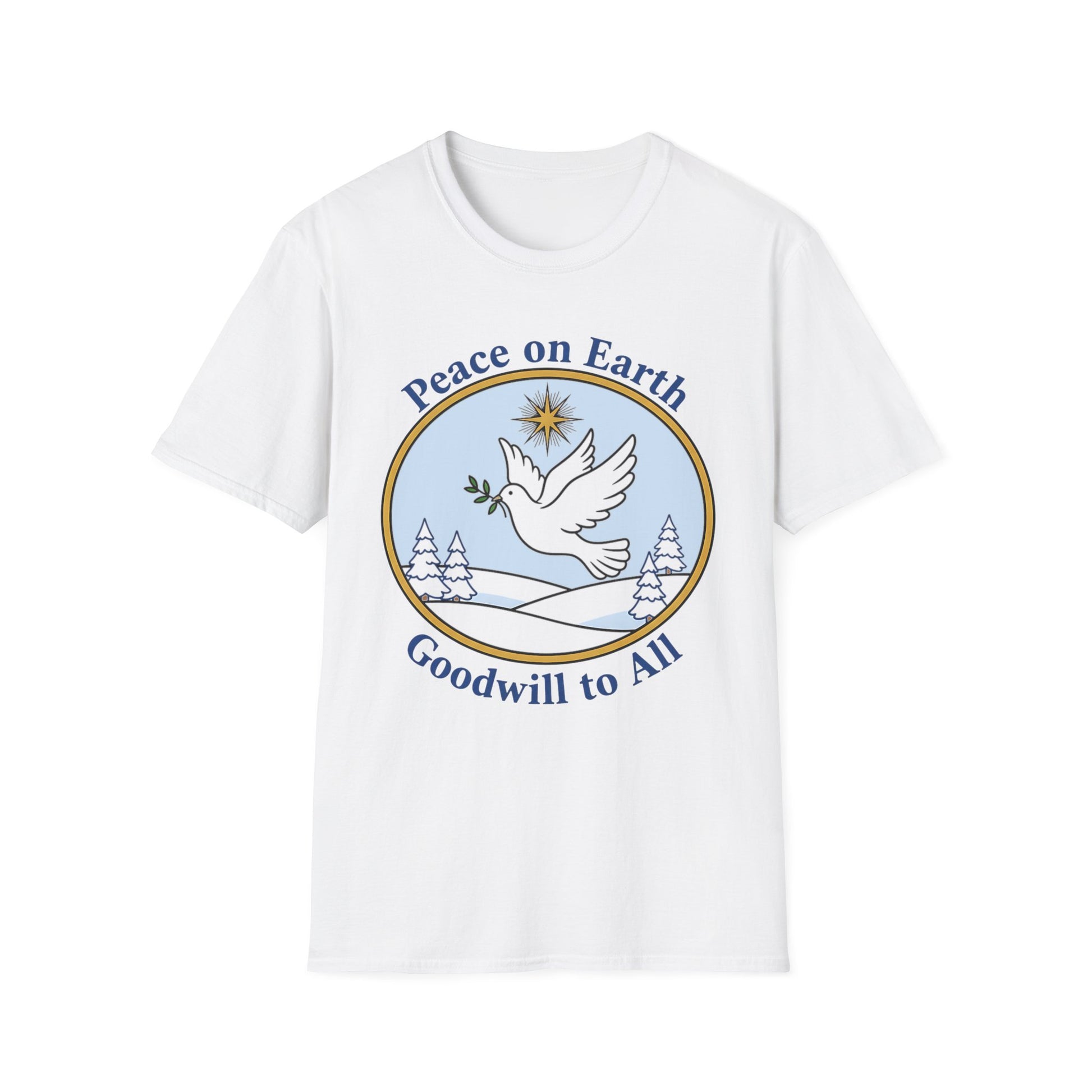 A061 - Embrace the spirit of peace and goodwill with this captivating unisex softstyle t-shirt. Designed for comfort and versatility, this shirt adds a serene touch to your wardrobe. Perfect for casual outings or cozy gatherings, it brings a feeling of warmth and positivity. This t-shirt is ideal for anyone looking to spread a message of hope, making it a thoughtful gift for friends and family during the holiday season, including Christmas and New Year celebrations. Made to resonate with those who appreciate meaningful fashion, it's an excellent choice for individuals who cherish peace and harmonious living.