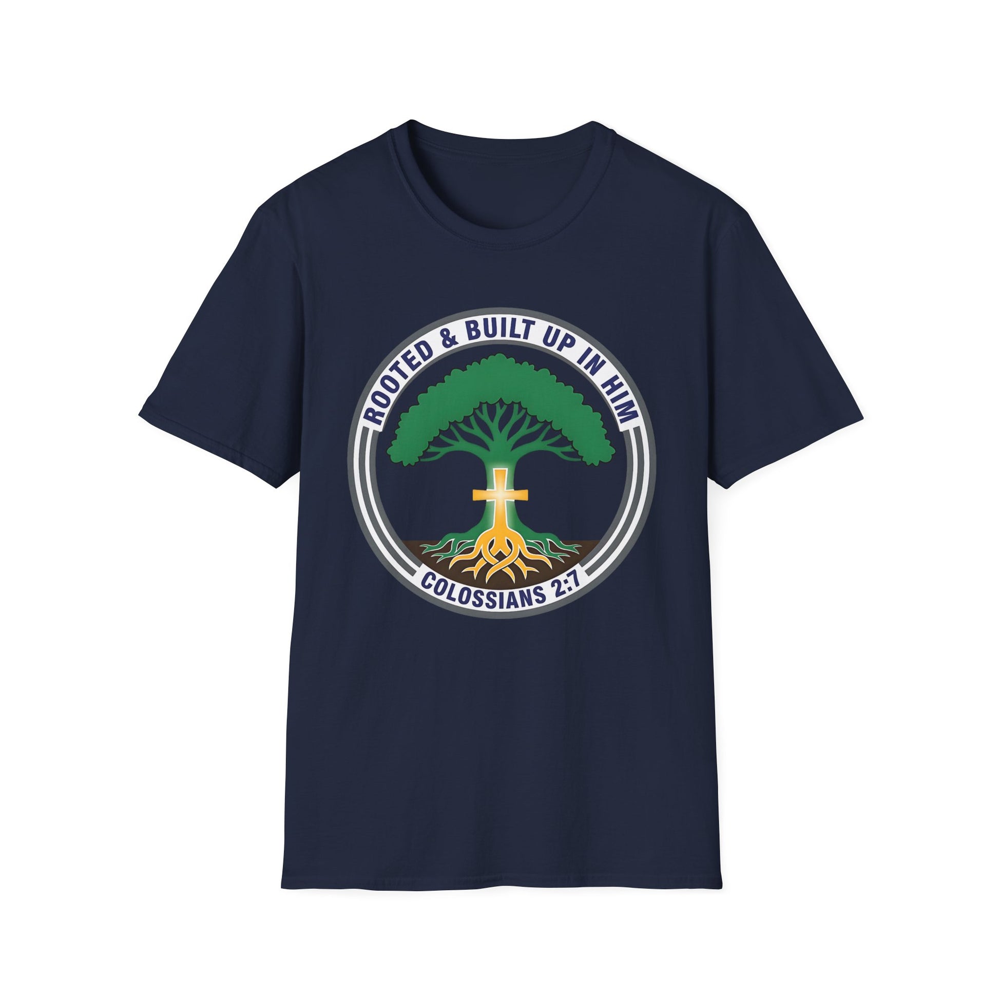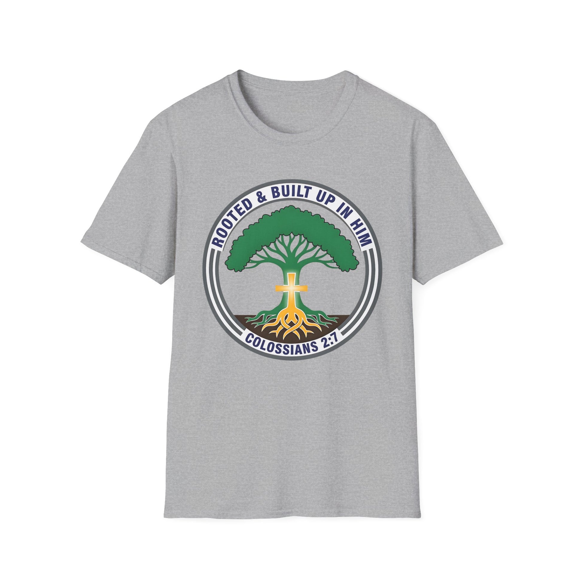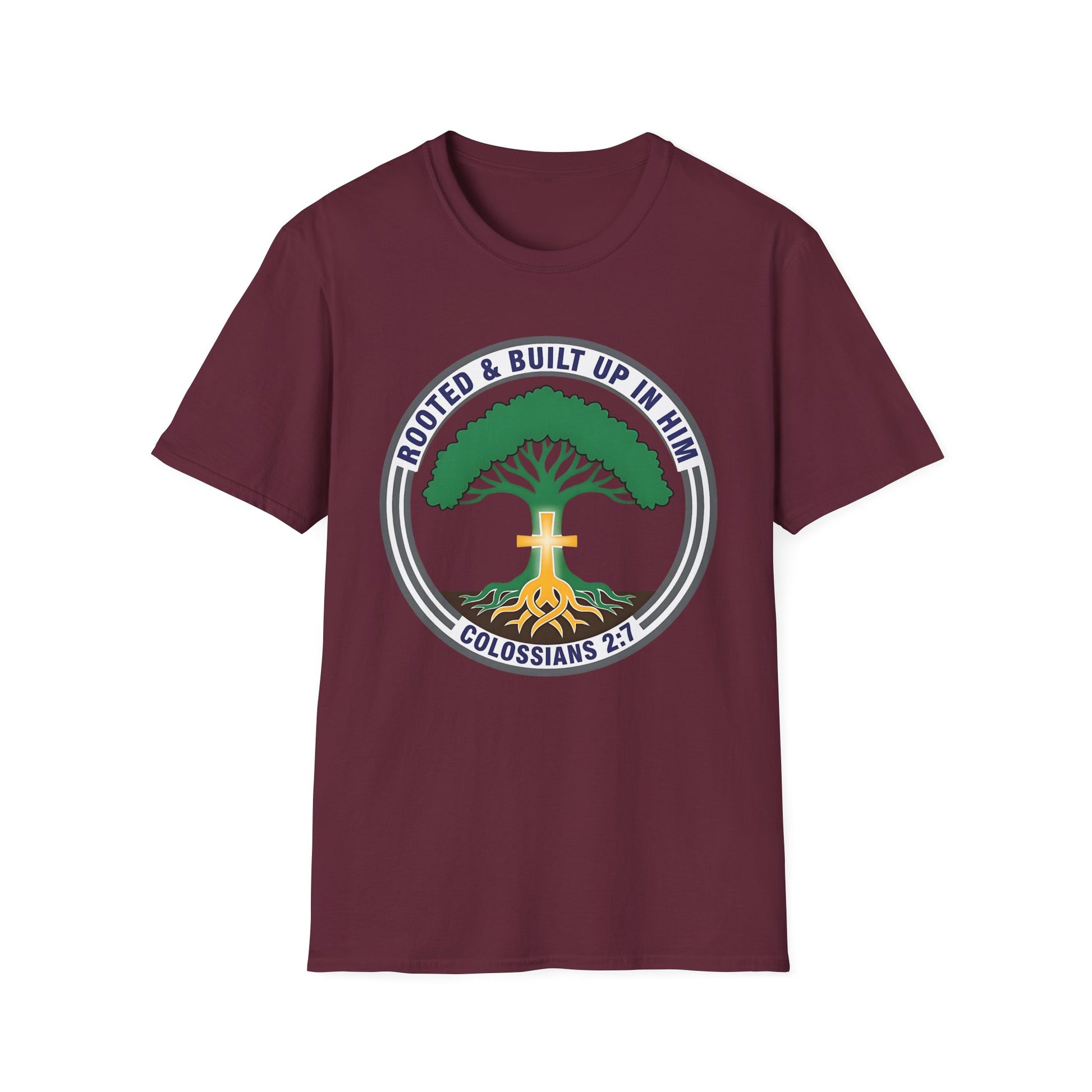 Rooted & Built Up in Him Colossians 2:7 Inspirational Christian T-Shirt