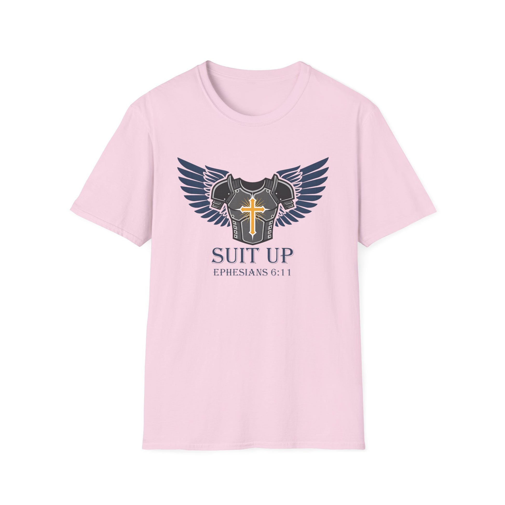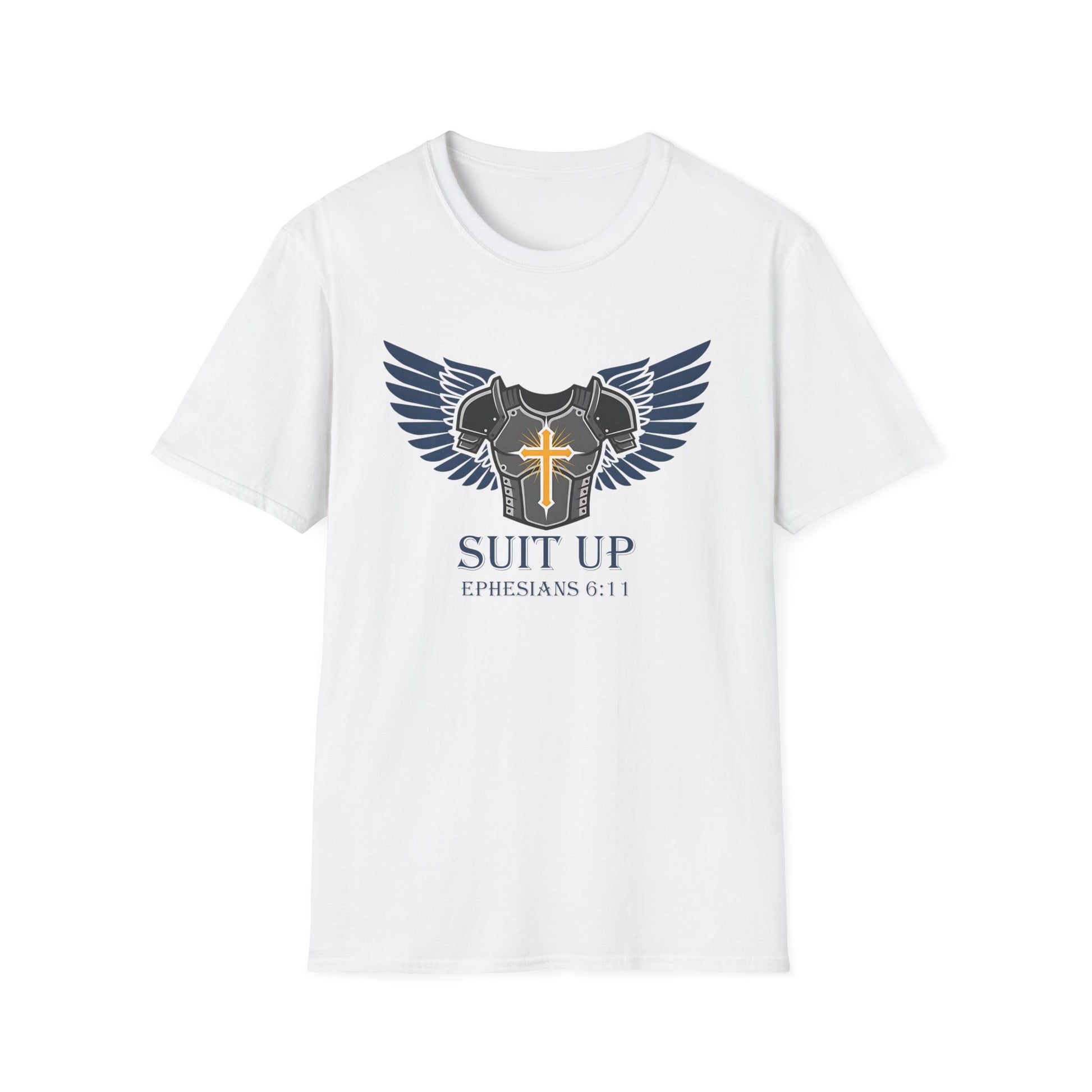 A111 - Remind Christians everywhere to suit up with this Unisex Softstyle T-Shirt designed for comfort and style. Crafted from high-quality, ring-spun cotton, it feels soft against the skin, making it perfect for everyday wear or special occasions. The classic fit and crew neckline ensure versatility, allowing you to dress it up or keep it casual. Whether you're expressing your faith or simply enjoying a laid-back day, this shirt resonates with confidence and authenticity. Perfect for holidays, church gatherings, or just a casual hangout with friends. Available for anyone who appreciates thoughtful design and comfort, this t-shirt makes a meaningful gift for birthdays, celebrations, or just to show someone you care.