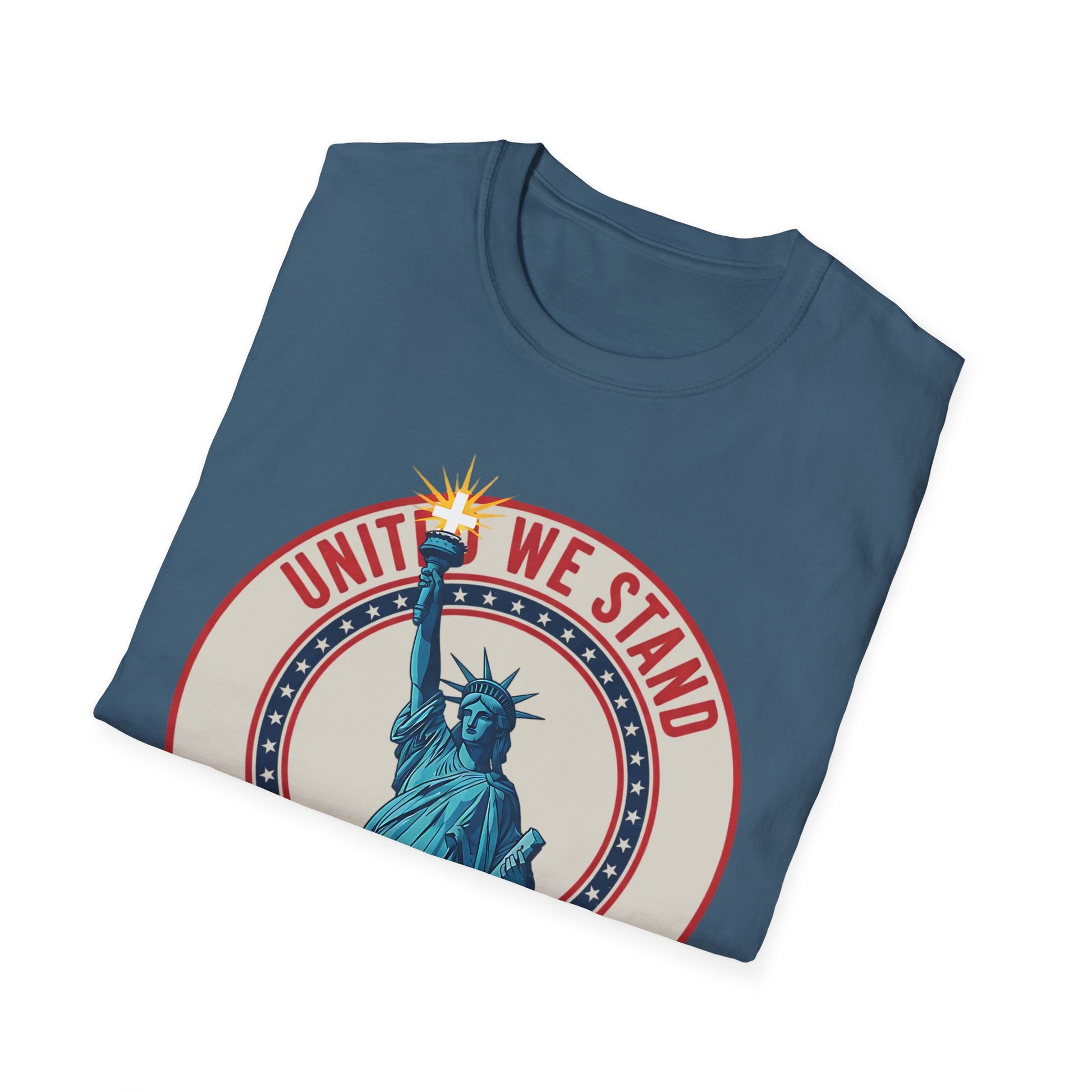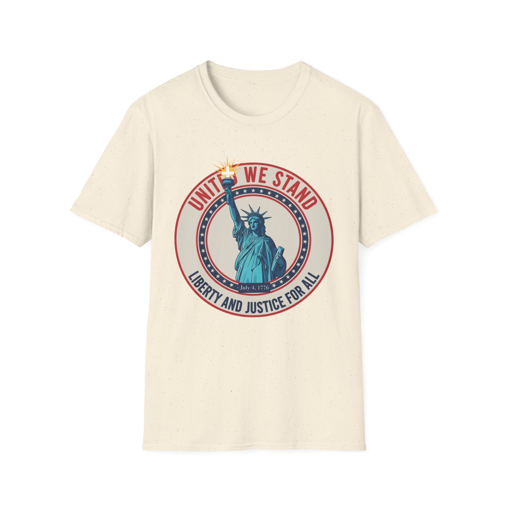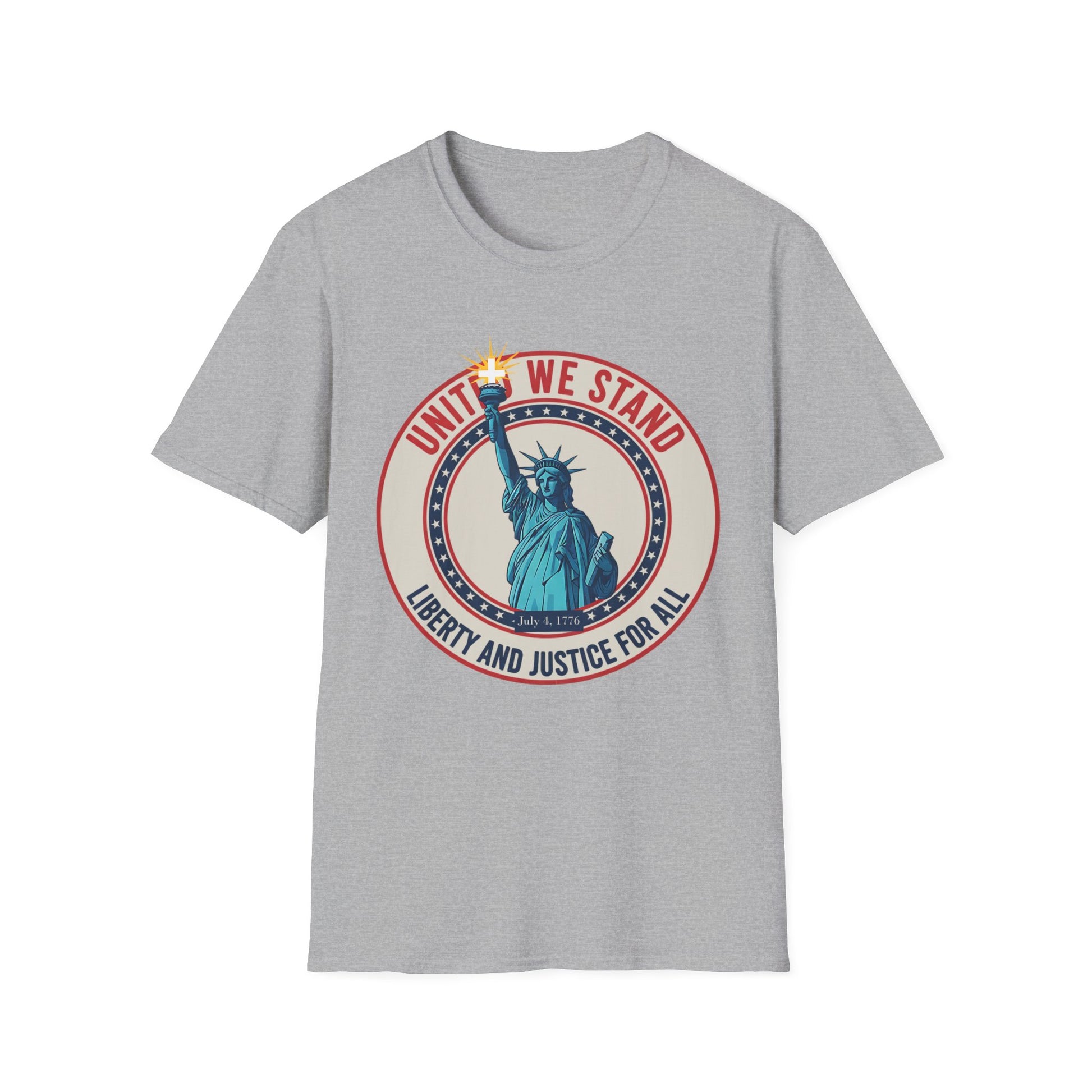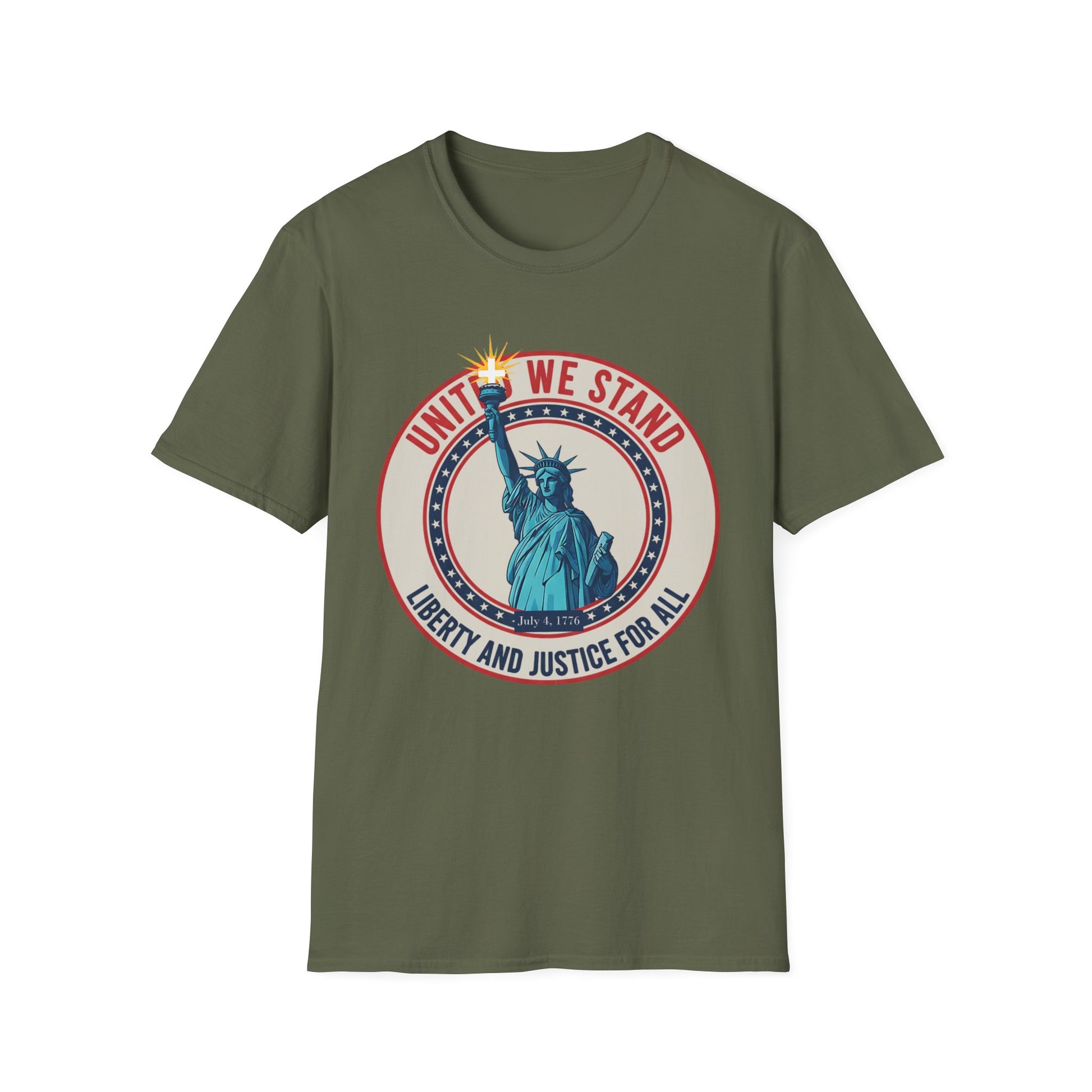 United We Stand Statue of Liberty Patriotic T-Shirt — Liberty and Justice for All